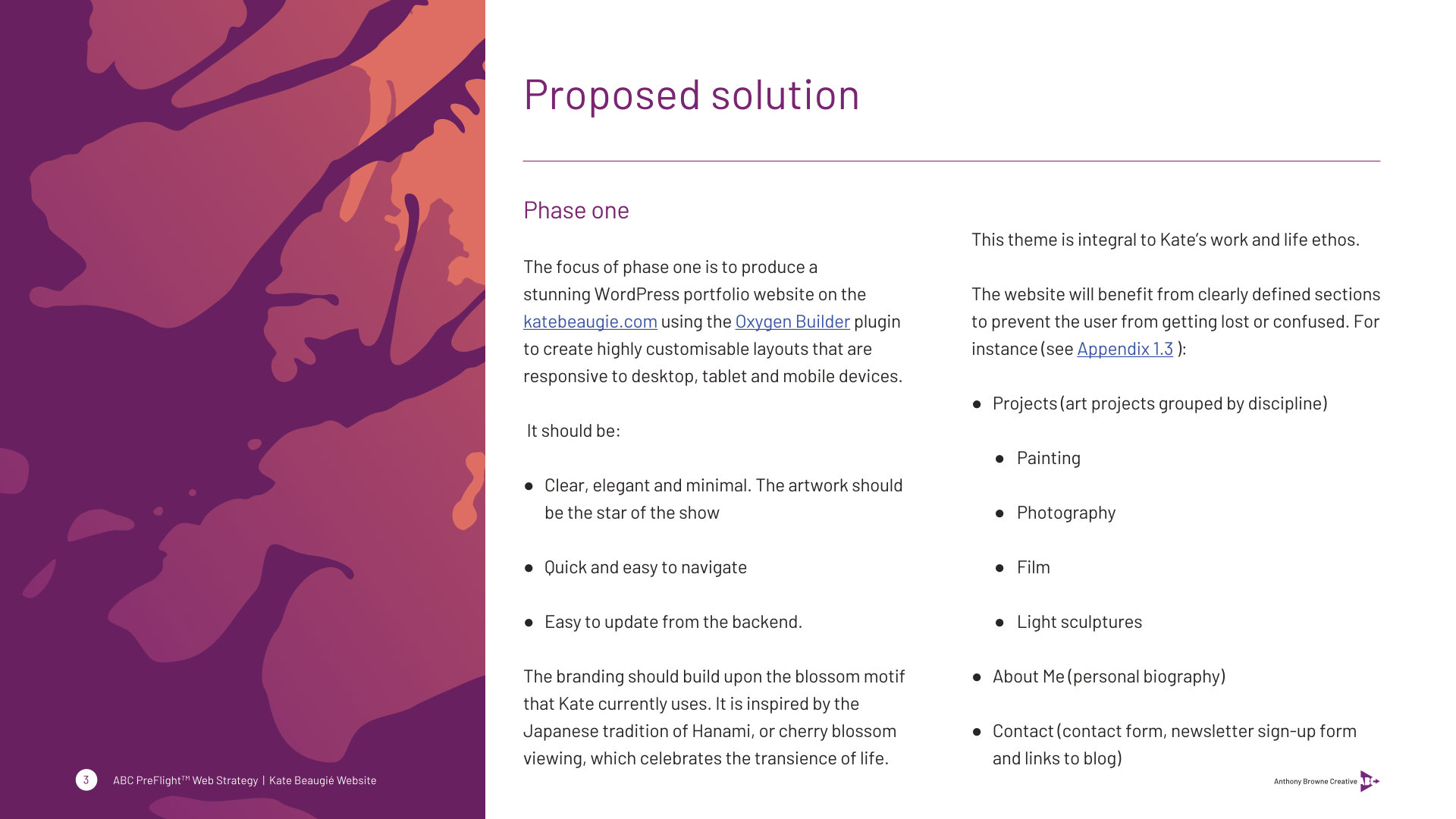 These insights formed the basis of the strategic plan to build her website, which outlined her current situation, her desired outcomes, and the steps I would take to get her there.