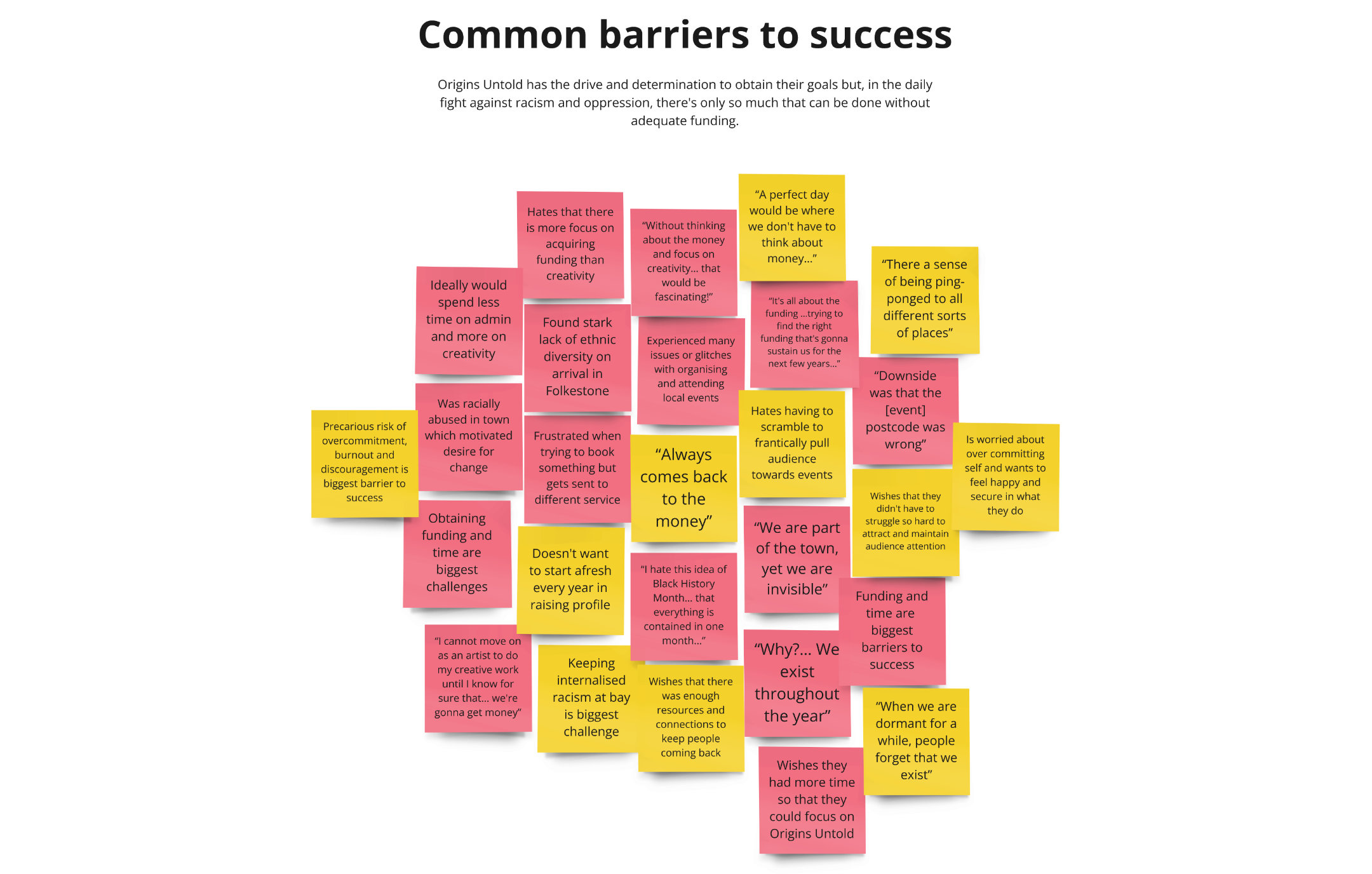 Origins Untold strives to unite the Folkestone community by hosting cultural, creative, and social events, including workshops, exhibitions, discussions, and performances on race and racism and celebrations of cultural diversity. However, they need help obtaining funding to sustain their annual programme of events. To mitigate this, they felt the need for a website to professionally promote their cause to potential funders while presenting clear and concise event information to the public.